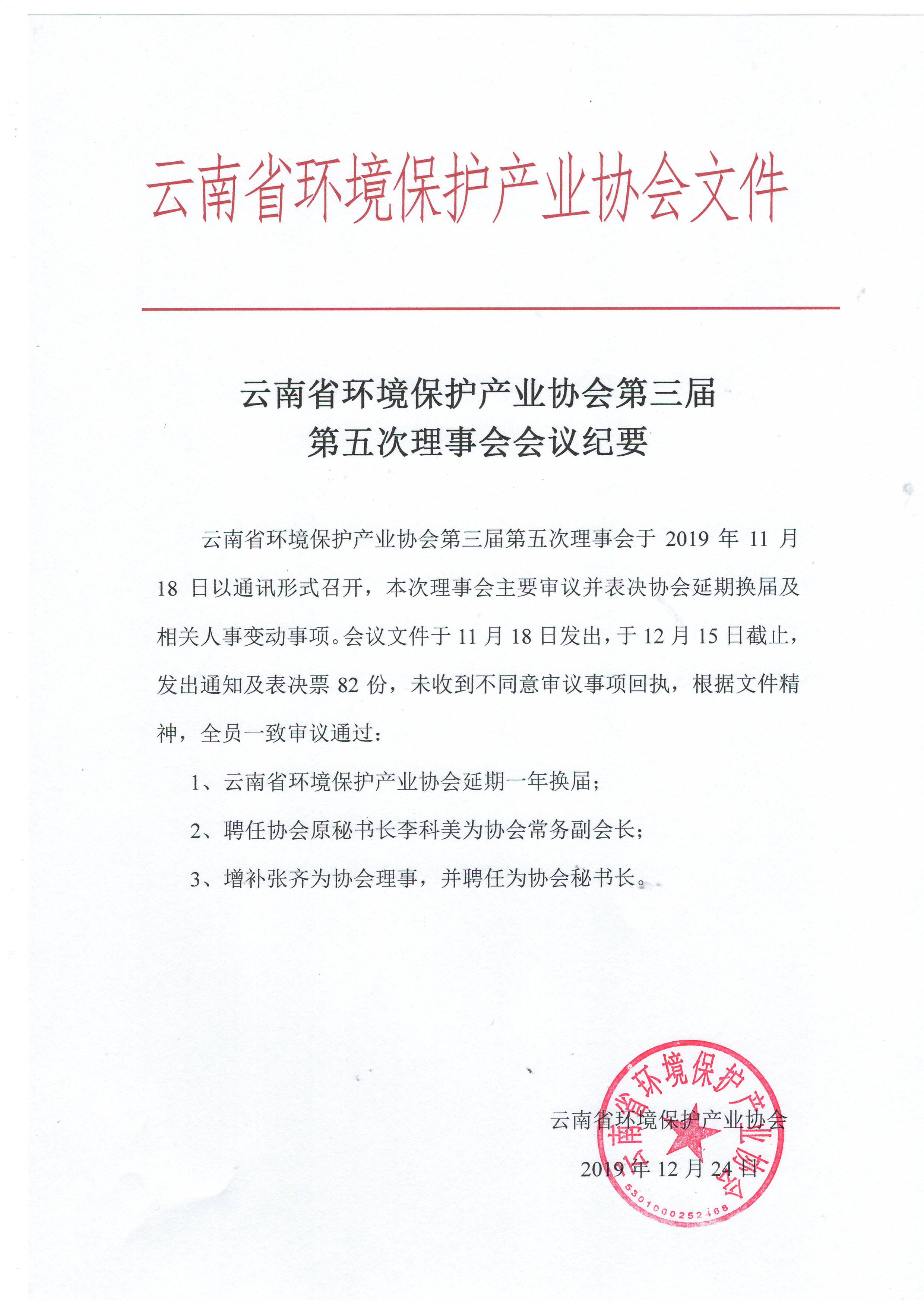 云南省環(huán)境保護(hù)產(chǎn)業(yè)協(xié)會(huì)第三屆第五次理事會(huì)會(huì)議紀(jì)要