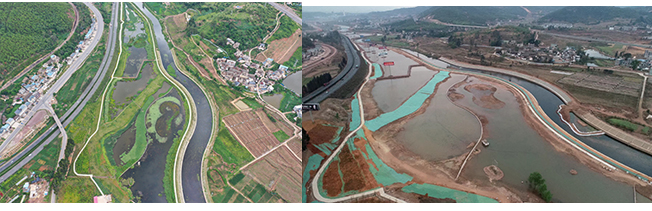 4.楚雄市龍川江西觀橋斷面水體達(dá)標(biāo)工程,通過(guò)實(shí)施污染底泥疏浚、橡膠壩、生態(tài)河堤建設(shè)、生態(tài)濕地恢復(fù)等一系列水環(huán)境治理及水生態(tài)修復(fù)工程,龍川江西觀橋國(guó)控?cái)嗝嬉延?span>2019年從重點(diǎn)整治的劣Ⅴ類國(guó)控?cái)嗝嬷幻摿?,提前一年達(dá)到水環(huán)境功區(qū)劃IV標(biāo)準(zhǔn)。