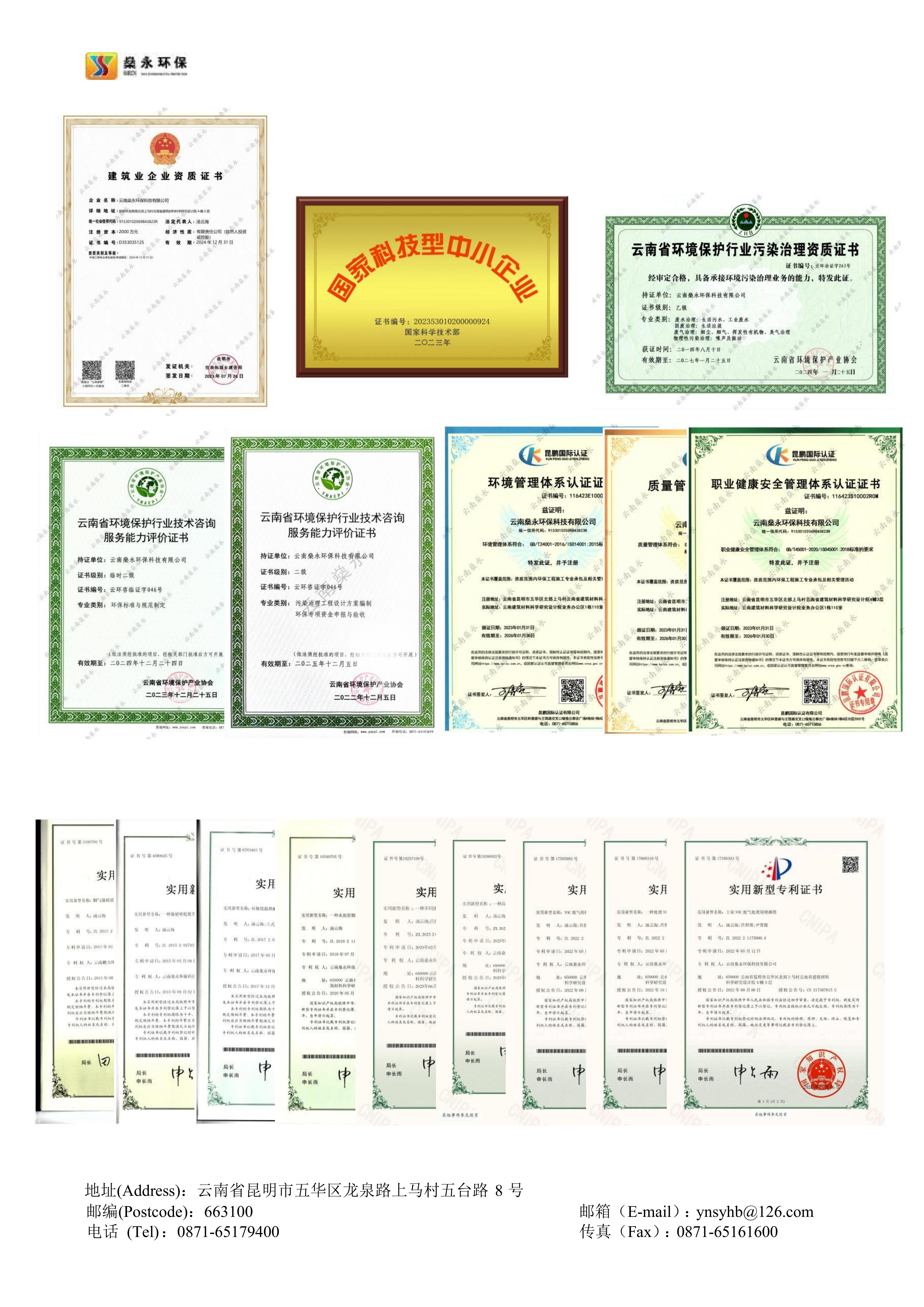 燊永公司堅持“創(chuàng)新、協(xié)作、共贏”的價值觀,以“專業(yè)、專心、專注”為服務(wù)理念,以“求實(shí)、求是、求精”為質(zhì)量宗旨,為客戶提供優(yōu)質(zhì)、高效、貼心的服務(wù)。公司獲得國家專業(yè)部門頒發(fā)的《環(huán)境工程專業(yè)承包三級》資質(zhì)、《污染治理乙級》資質(zhì)、《企業(yè)信用等級A級》證書、《云南省科技型中小企業(yè)》認(rèn)定證書、《ISO9001/GBT50430質(zhì)量管理體系》證書、《ISO14001環(huán)境管理體系》證書、《ISO45001職業(yè)健康安全管理體系》證書等多項榮譽(yù)和多項的專利技術(shù)。